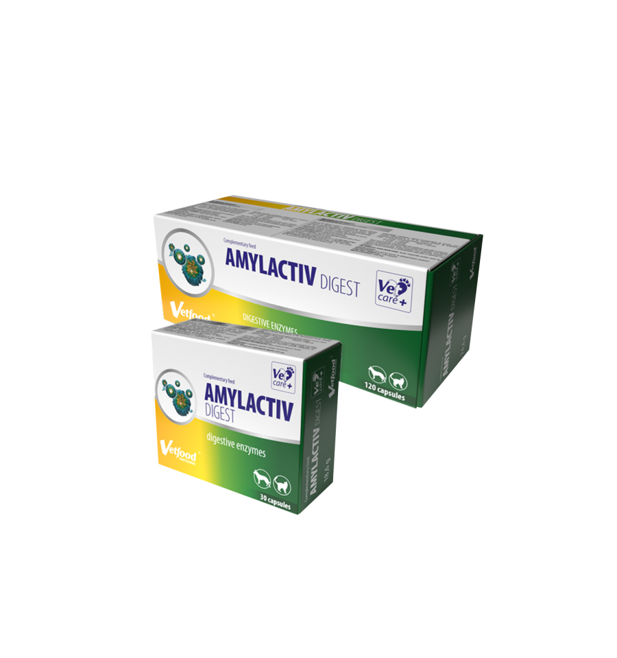 Amylactiv Digest to produkt zawierający wysokie stężenie enzymów, biorących udział w trawieniu i wchłanianiu składników pokarmowych: lipaza - tłuszcze, amylaza - węglowodany, proteaza - białka.
