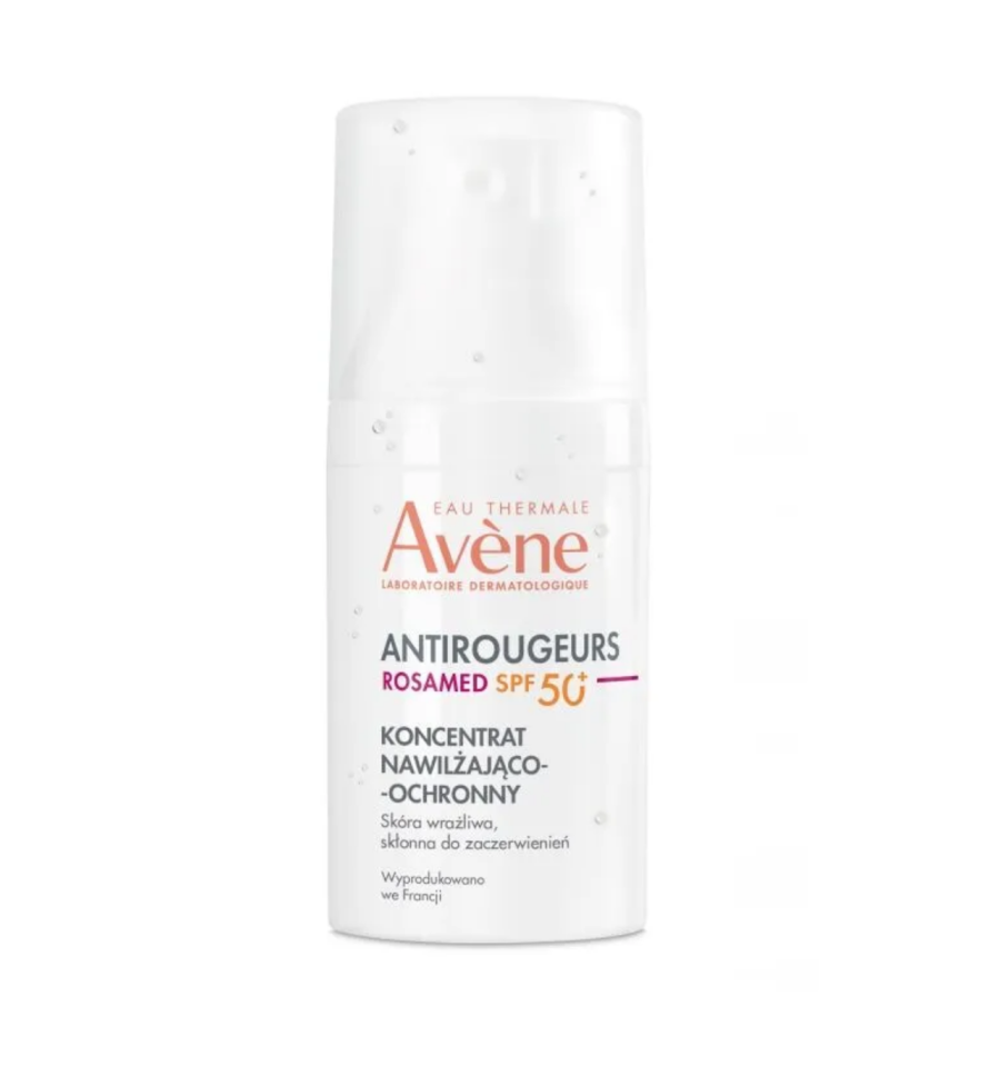 Avène Antirougeurs Rosamed SPF 50+ to specjalistyczny koncentrat nawilżająco-ochronny, stworzony z myślą o codziennej pielęgnacji skóry wrażliwej i reaktywnej, ze skłonnością do zaczerwienień. Jego unikalna formuła łączy w sobie wysoką ochronę przeciwsłoneczną (SPF 50+) z intensywnym działaniem redukującym zaczerwienienia i nawilżającym.