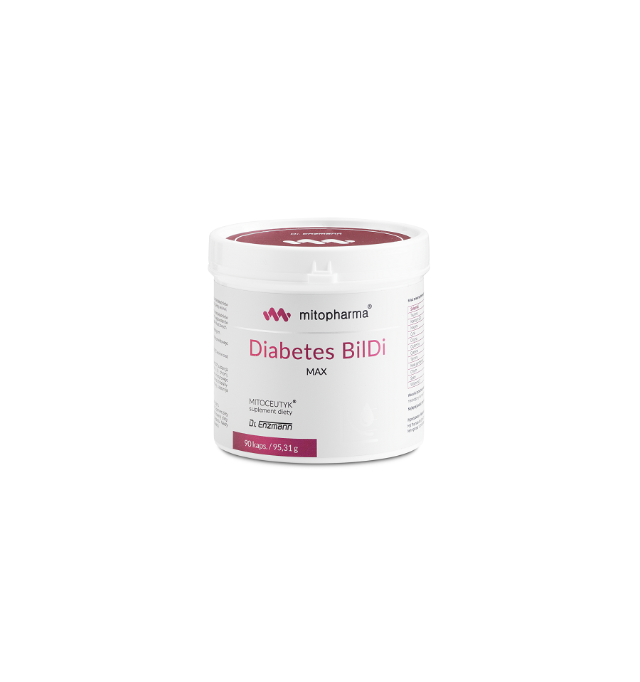 Diabetes BilDi® zawiera kluczowe substancje mitotropowe, które dzięki swoim właściwościom chronią oraz aktywują mitochondria komórek, są nimi: tauryna, koenzym Q10, niacynamid (witamina B3), cynk, l- glicyna, kwas glutaminowy, l- cysteina, witamina B1, kwas pantotenowy (witamina B5), chrom i witamina D3.