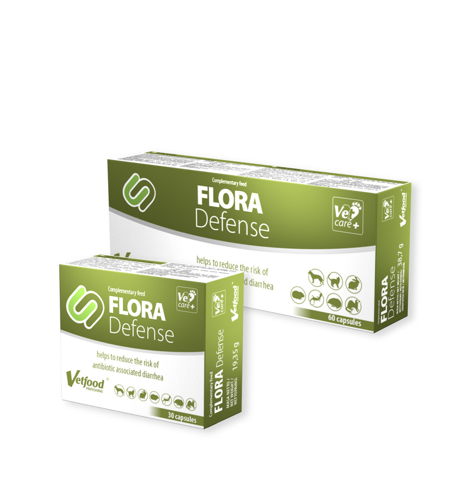 Flora Defense Przeznaczenie: - wspomagająco w trakcie biegunki, - w trakcie i po antybiotykoterapii, - ograniczenie ryzyka wystąpienia kandydozy, - przeciwdziałanie translokacji bakterii patogennych do jelit, - przeciwdziałanie wystąpieniu niedrożności jelit.