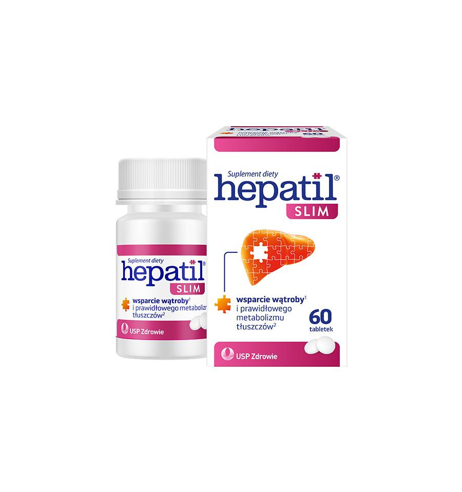 Hepatil Slim to suplement diety w postaci tabletek, którego składniki wspierają pracę wątroby¹ i utrzymanie prawidłowej masy ciała⁶.
