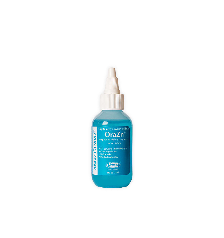 MAXI/GUARD OraZn to produkt zalecany do codziennej higieny jamy ustnej, charakteryzujący się wysoką akceptowalnością u zwierząt.