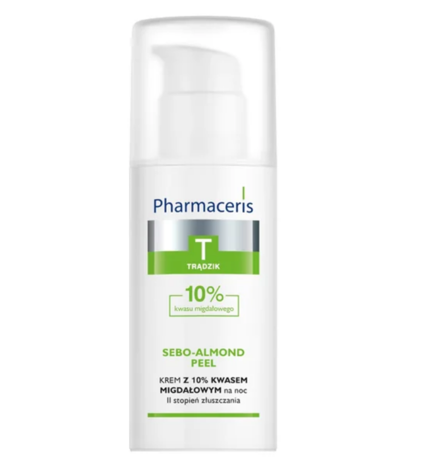 Pharmaceris T Sebo-Almond Peel to krem na bazie kwasu migdałowego. Jego formułę opracowano na wzór peelingów dermatologicznych. Składniki zawarte w kosmetyku pomagają regulować wydzielanie sebum i przyczyniają się do wygładzenia skóry. Cera z niedoskonałościami wymaga delikatnego oczyszczania i złuszczania martwego naskórka. Pielęgnacja skóry trądzikowej z użyciem kremu ma więc na celu zmniejszanie warstwy rogowej, unormowanie produkcji łoju i ujednolicenie kolorytu. Pozwala to na zmniejszenie liczby wyprysków i zminimalizowanie ryzyka powstawania nowych zmian trądzikowych.