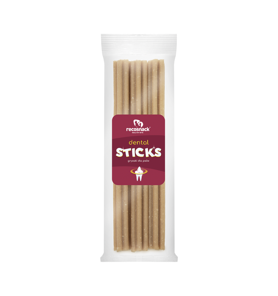 Recosnack Dental Sticks pomogą utrzymać zęby i dziąsła w czystości i zdrowiu. Funkcjonalne przysmaki, których unikalny kształt i powierzchnia redukują powstawanie płytki nazębnej i kamienia. Niezwykle smaczne i aromatyczne. Stosowane jako przekąska między posiłkami.