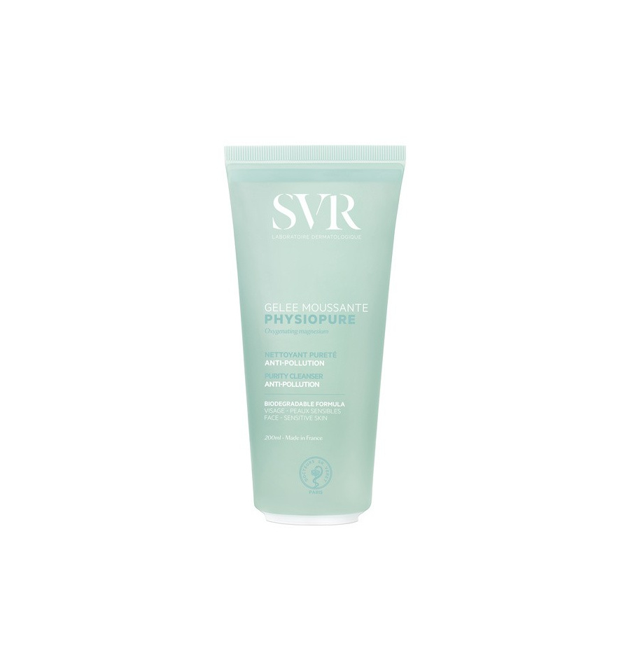 SVR Physiopure, żel oczyszczający do mycia – skutecznie oczyszcza skórę bez pozostawienia uczucia ściągnięcia i podrażnienia, usuwa nawet wodoodporny makijaż. Posiada pieniącą się konsystencję, świeży zapach i 98% składników pochodzenia naturalnego.
