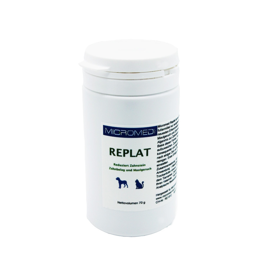 Rekomendowane dawkowanie - 1 miarka (1 g) na 5 kg wagi ciała. Dodatkowo zaleca się oczyszczanie zębów 2 razy w tygodniu za pomocą płynu stomatologicznego Micromed Vet Replat.